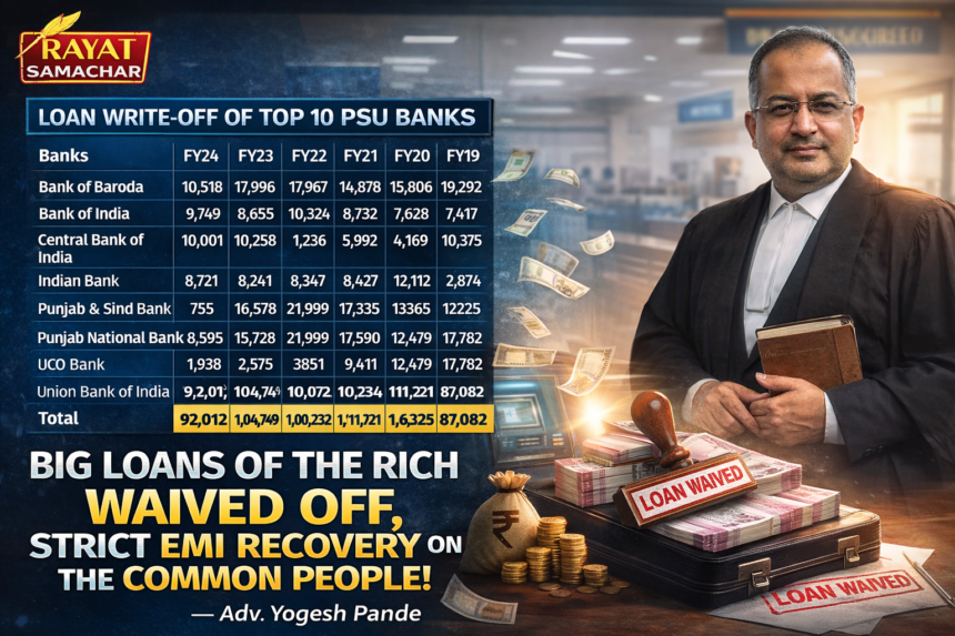(India news) देशातील बँकिंग व्यवस्थेवर पुन्हा एकदा गंभीर प्रश्नचिन्ह निर्माण करणारी माहिती समोर आली आहे. ही सविस्तर मांडणी ॲड. योगेश पांडे यांनी केली असून, त्यांच्या लेखनातून मोठ्या कर्जदारांना मिळणारी सवलत आणि सामान्य नागरिकांवरील कठोर कारवाई यातील विषमता अधोरेखित झाली आहे.