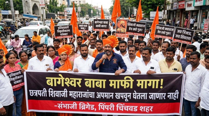 (Politics) बागेश्वर बाबांनी छत्रपती शिवाजी महाराजांबाबत केलेल्या वादग्रस्त विधानामुळे राज्यात संतापाची लाट उसळली आहे. “शिवाजी महाराज युद्धाने थकले होते आणि त्यांनी आपले राज्य समर्थांच्या चरणी अर्पण केले” असे वक्तव्य केल्याने इतिहासाचे विकृतीकरण होत असल्याचा आरोप करत संभाजी ब्रिगेडचे पिंपरी चिंचवड शहराध्यक्ष सतीश काळे यांनी तीव्र निषेध नोंदवला.