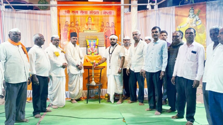 (Religion) तालुक्यातील नेप्ती येथे श्रीराम नवमीनिमित्त आयोजित करण्यात आलेल्या नवनाथ संगीत कथा ज्ञानयज्ञाला भाविकांचा उत्स्फूर्त प्रतिसाद मिळत आहे. श्रीराम सेवा मंडळ व ग्रामस्थ यांच्या संयुक्त विद्यमाने श्रीराम मंदिरासमोर हा भव्य सोहळा सुरू असून यंदा या परंपरेचे ३७ वे वर्ष साजरे होत आहे. सोहळ्याच्या निमित्ताने श्रीराम विजयग्रंथ व ज्ञानेश्वरी पारायणासह विविध धार्मिक कार्यक्रमांचे आयोजन करण्यात आले, अशी माहिती रामदास फुले यांनी दिली.