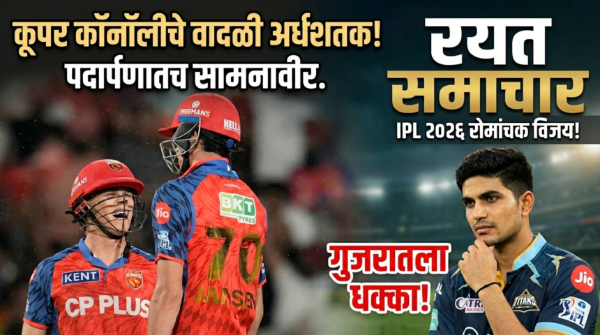 (T20) महाराजा यादविंद्रसिंह आंतरराष्ट्रीय क्रिकेट स्टेडियम येथे इंडियन प्रीमियर लीग २०२६ मधील चौथ्या टी-२० सामन्यात पंजाब किंग्सने गुजरात टायटन्सवर ३ विकेट्सने निसटता पण संस्मरणीय विजय मिळवला. १६३ धावांचे लक्ष्य पंजाबने १९.१ षटकांत १६५/७ असे गाठत हंगामातील आपला पहिला विजय नोंदवला. या विजयाचा शिल्पकार ठरला कूपर कॉनॉली, ज्याने ४४ चेंडूत ७२ धावांची संयमी पण आक्रमक खेळी करत पदार्पणातच सामनावीराचा सन्मान पटकावला.